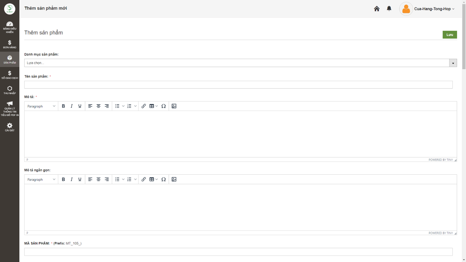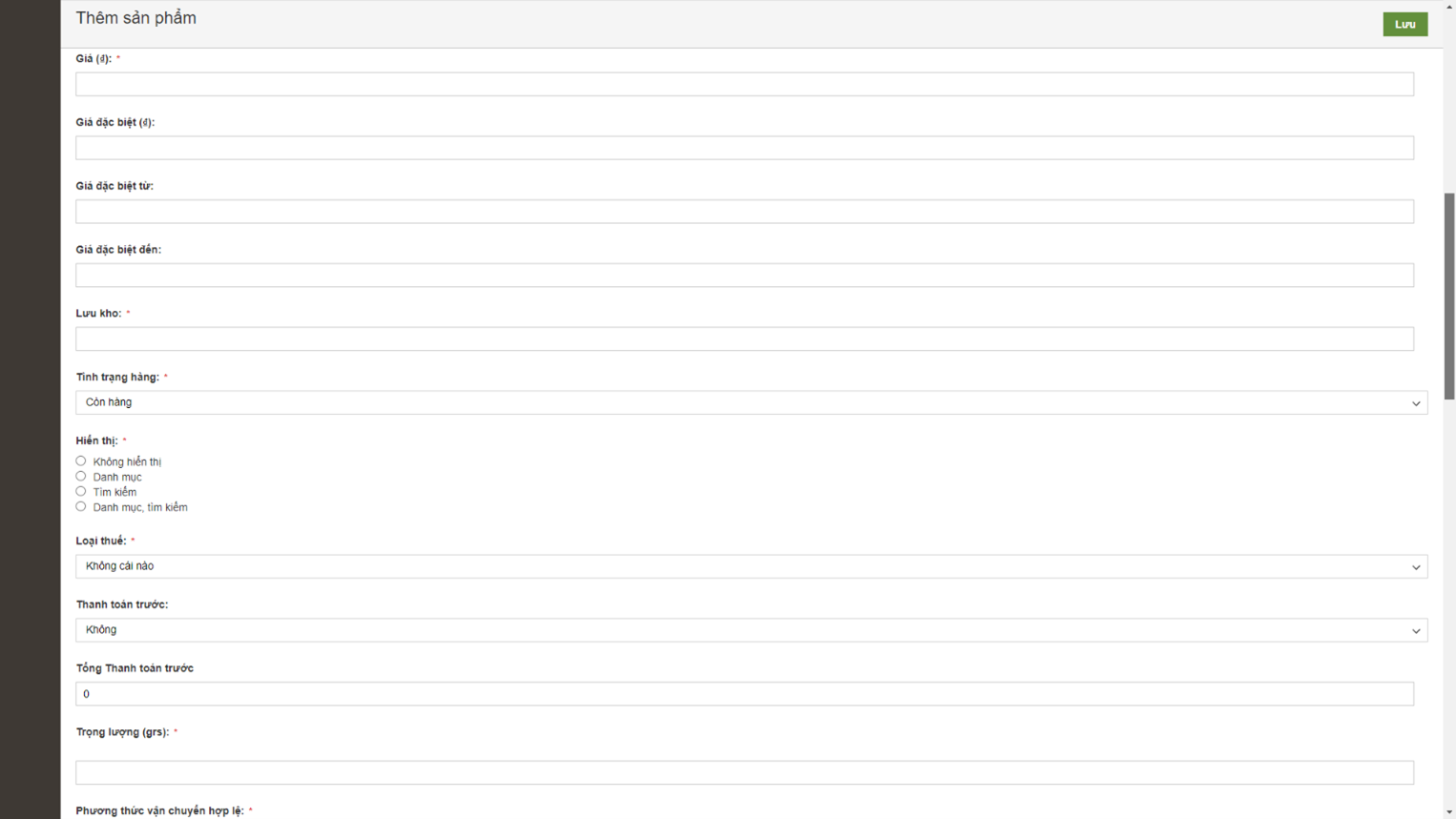 Bước 2: Điền đẩy đủ thông tin của tin đăng và nhấn lưu sản phẩm